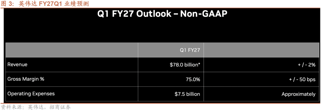 毛利率:GAAP毛利率预计为74.9%,Non-GAAP毛利率预计为75%,均上下浮动50个基点。全年来看,我们预计毛利率将维持在75%左右。随着Vera Rubin平台的转型推进,我们将及时向市场更新进展。