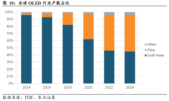 中国在全球有机发光二极管(OLED)市场的占比已从2004年的近乎为零(仅1%)攀升至如今的半数以上,而韩国企业的该市场占比在这一时期从96%降至45%。