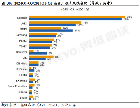 电源管理芯片已成为公司第三大产品主轴,2025年上半年电源管理芯片的营收占比约12%。目前公司正在进行90-110nm的BCD电源管理芯片的研发,未来公司产品将应用于更多领域。