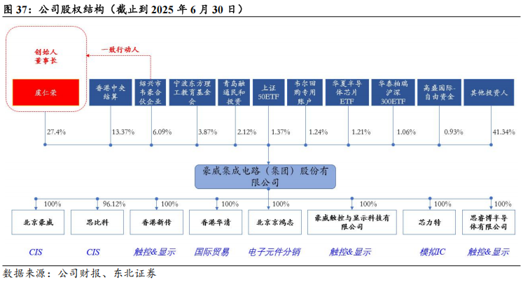 截止到2025年6月30日,公司创始人、董事长虞仁荣先生持有公司27.4%股票,绍兴市韦豪股权投资基金合伙企业(有限合伙)(简称“绍兴韦豪”)由虞仁荣先生控制,持有公司6.09%股票,与虞仁荣是一致行动人。宁波东方理工教育基金会持有公司3.87%股票,其股票主要来自于虞仁荣先生和绍兴韦豪无偿捐赠。公司前十大股东持有公司58.66%股票。