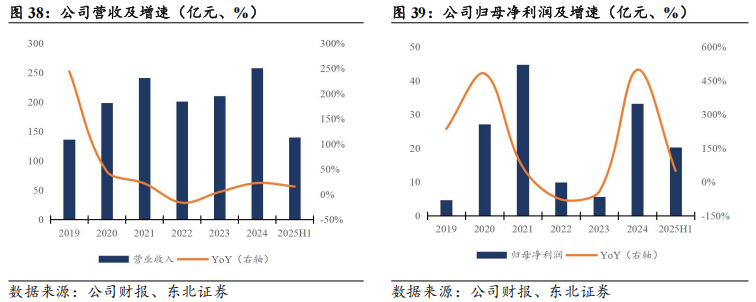 下游需求恢复推动公司营收恢复增长,归母利润有望创历史新高。2019年公司完成对豪威科技的并购之后,公司主营业务由半导体分销转向半导体设计。完成并购之后,公司积极导入国内供应链,加强与中国晶圆代工企业,如中芯国际和华虹加强合作,降低供应链成本,并加强与国内消费电子客户的商业合作,2021年由于下游消费电子需求增长显著,叠加全球半导体供应短缺,公司实现收入241.04亿元/yoy 22%,实现归母净利润44.76亿元/yoy 65%,双双创上市以来新高。2022-2023年,全球手机销量下滑,消费电子行业萎靡,公司盈利水平下滑显著。2024年开始,得益于智能手机销量触底反弹,手机光学影像性能开启新升级周期,公司多款高端手机CIS产品放量,推动公司营收和利润实现大幅反弹。2025年上半年,得益于国内汽车市场智能驾驶进程加快,车载CIS产品迎来放量,成为公司营收增长的主要动力。2025H1公司实现收入139.56亿元/15%,实现归母净利润20.28亿元/48%。