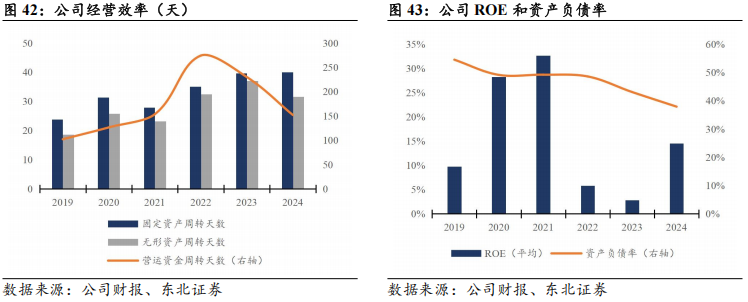 经营效率逐步改善,公司ROE迎来触底反弹。2022-2023年受累于下游需求萎靡以及行业竞争格局恶化,公司经营效率下滑显著,营运资金周转天数有所攀升,而在2024年,运营情况得到显著改善,营运资金周转天数下降至152天。一方面得益于收入增长,另一方面管理层也加强现金管理效率,将调整至健康水位。近几年公司负债率稳步下降,但得益于营运效率改善和盈利水平的提升,2024年公司ROE回升显著,达到15%,预计公司整体ROE将在2025年进一步提升。