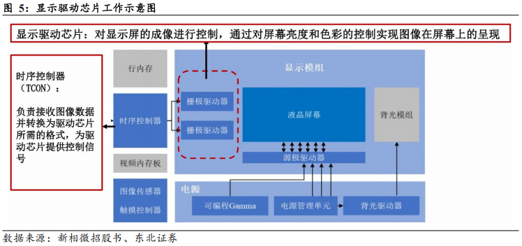 显示驱动芯片是显示面板的重要控制元件,其将显示面板的控制电路集成在一颗芯片中,向显示面板发送信号,继而实现对屏幕亮度和色彩的控制,使得诸如字母、图片等图像信息得以显示。