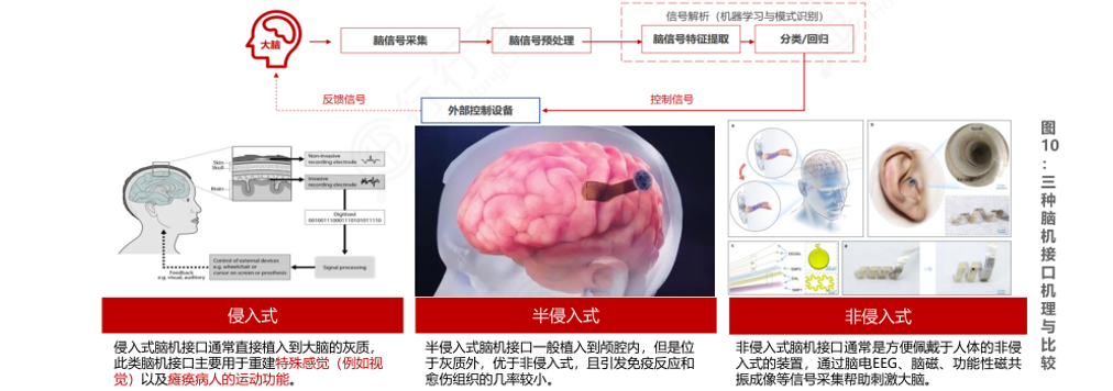 根据信号采集方式的侵入程度,脑机接口主要分为三类:侵入式、半侵入式和非侵入式。