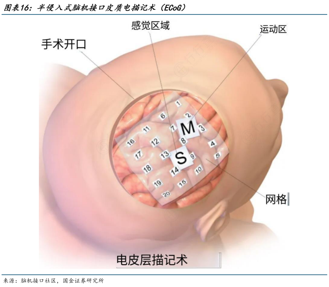 半侵入式脑机接口,通过微创手术将微型电极阵列植入颅腔内,但不直接接触大脑皮层,通常位于硬膜下或蛛网膜下区域,基于皮层脑电图(ECoG)进行信息分析。这种接口的信号质量,介于侵入式和非侵入式之间,噪声较低,支持较长期监测,同时免疫反应和愈伤组织几率较小。然而,它仍需手术操作,成本较高。