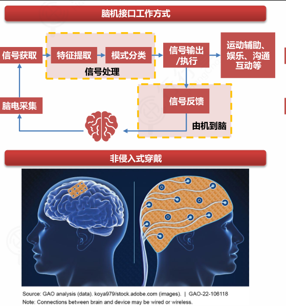 非植入式设备:通过头皮电极或头戴装置采集脑电信号,安全性更高,适用于教育、娱乐和消费电子场景。