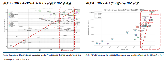 复盘LLM过去3年的演进轨迹,每一年都是在特定技术维度上通过资源堆砌的暴力美学实现了10倍级以上的跃升。2023年是预训练的Scaling Law,以GPT-4为代表,行业将模型参数量从千亿级拉升至万亿级规模(第一个10倍),成功将海量互联网数据压缩进权重,彻底解锁了模型的通用常识底座;2024年是后训练的Scaling Law,以DeepSeekR1及GPT-o为代表,通过强化学习与思维链技术解锁了深度逻辑推理能力,同一模型在响应复杂任务时的推理Token消耗量是单纯回答问题的10倍以上(第二个10倍);2025年则是存储的Scaling Law,随着Gemini3等新一代模型的面世,通过堆高存储硬件与架构优化,将模型的上下文窗口长度从100k拉升至1M 甚至10M 级别(第三个10倍),解锁了模型的长期记忆与海量信息吞吐能力。