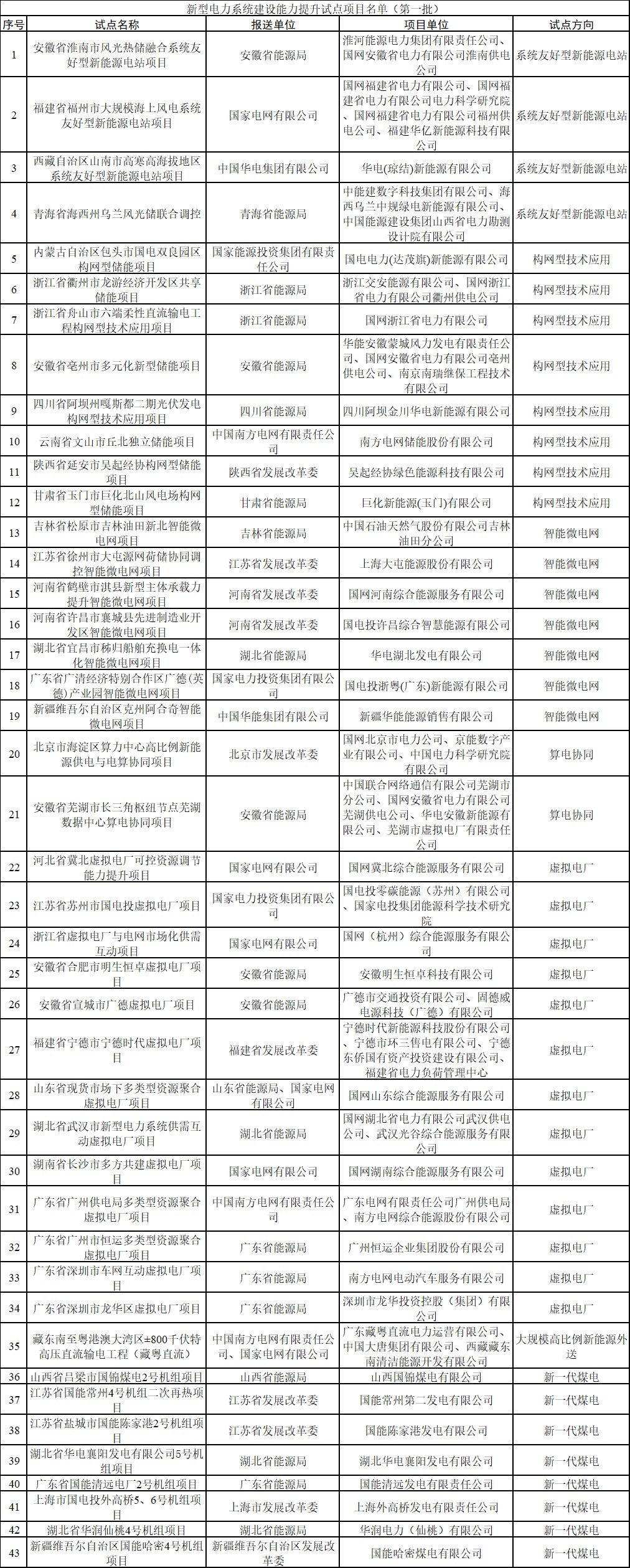 根据国家能源局此前公示信息,此次试点工作依据《国家发展改革委国家能源局国家数据局关于印发〈加快构建新型电力系统行动方案(2024—2027年)〉的通知》及《国家能源局关于组织开展新型电力系统建设第一批试点工作的通知》有关要求开展,经第三方机构评审后确定。