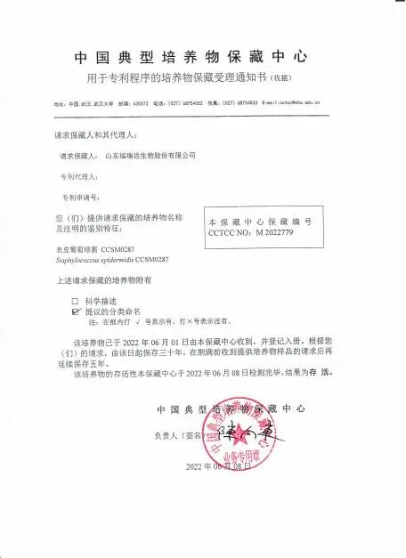 表皮葡萄球菌CCSM0287菌株保藏证书