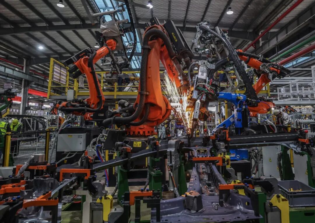 工业机器人在生产新能源汽车零部件。新华社记者 徐昱 摄