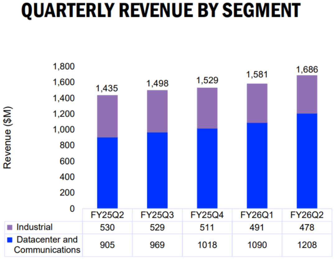 本季度,Coherent交出亮眼成绩单,其营收达16.9亿美元,同比增长17%,若剔除航空航天与国防业务出售影响,同比增幅更是高达22%,利润同步实现显著增长,而这一增长的核心驱动力,正是来自数据中心与通信板块的强劲需求,其中CPO相关业务的突破性进展成为关键亮点。