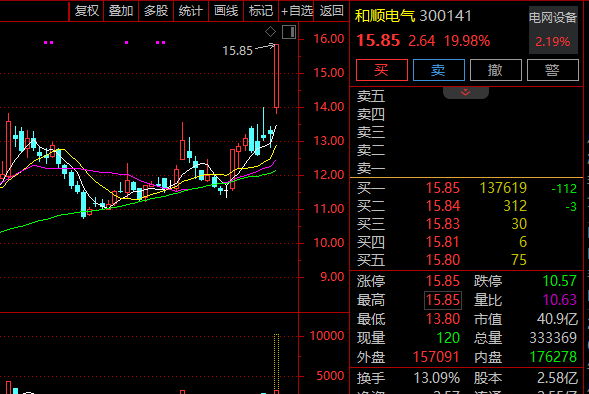 盘初,电网设备股震荡走强,和顺电气(300141)、三变科技、中国西电、伊戈尔涨停,新特电气、北京科锐、保变电气、神马电力跟涨。