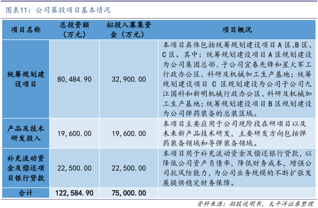 我们认为,这些募投项目建成后将大幅提升公司科研生产能力,实现各子公司协同发展,有利于确保公司产品和技术的不断升级与创新,增强核心竞争力,将公司打造成区域性重要的武器装备和创新型科研生产基地,整体经营业绩有望迈上新台阶。