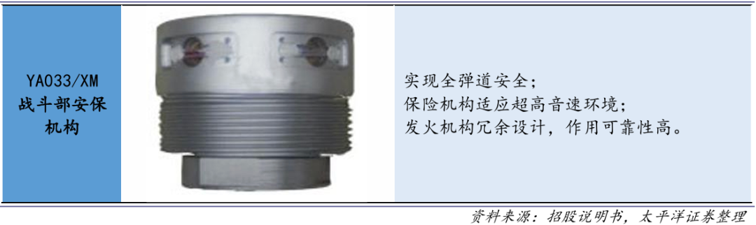 导弹主要由导航部、战斗部、发动机及控制舱等构成。发动机是导弹的推进系统,为导弹系统提供飞行动力。目前主流的导弹发动机根据其推进方式主要分为固体发动机、液体发动机、涡轮发动机及冲压发动机等。固体发动机以其储存运输方便、可靠性高、反应速度快及初始推力大 的特点成为导弹、火箭弹最广泛应用的核心动力系统。导弹(火箭弹)固体发动机安全与控制产品,作为实现战斗功能的重要模块,满足现代战争条件下强电磁干扰、快速变化的极端环境温度、大过载等恶劣环境下,保证导弹(火箭弹)储存、运输、发射等过程中的安全性及规定时点稳定、可靠作用。
