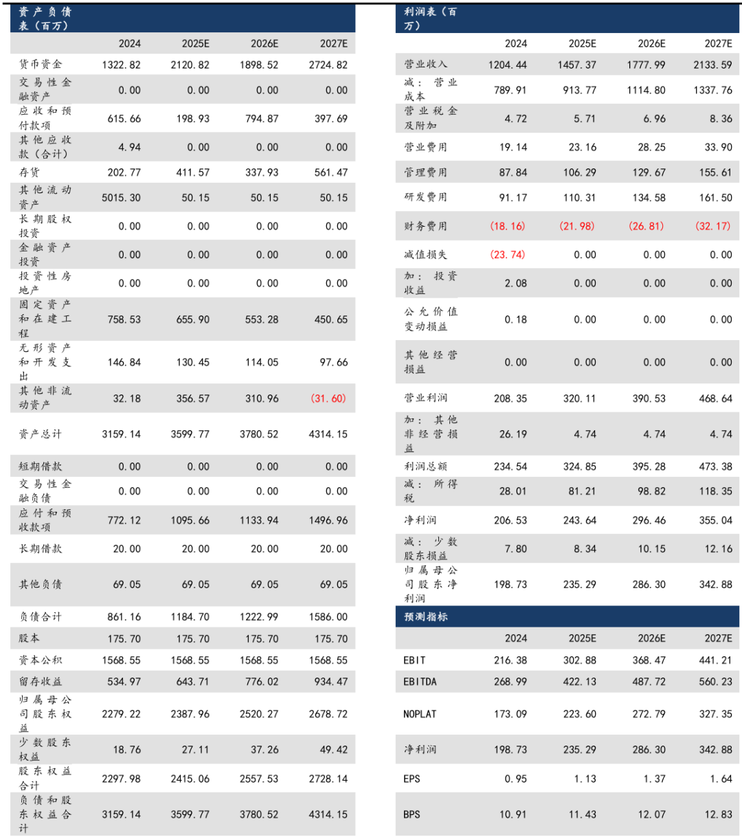 我们预计公司2025-2027年的净利润为2.35亿元、2.86亿元、3.43亿元,EPS为1.13元、1.37 元、1.64元,对应PE为53倍、44倍、37倍,维持“买入”评级。
