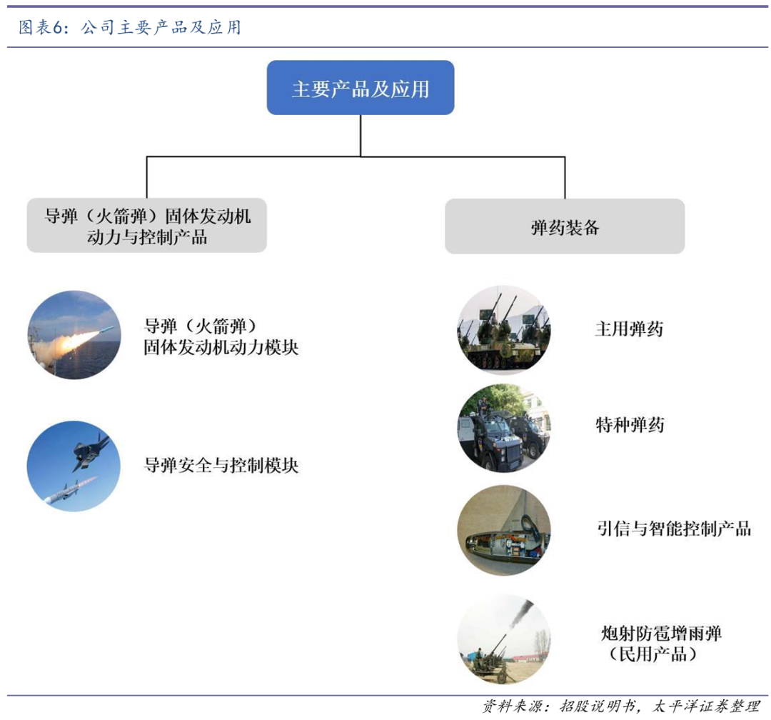 公司产品主要分为两大类:一是导弹(火箭弹)固体发动机动力与控制产品,二是弹药装备产品。目前,公司各业务板块布局情况如下: