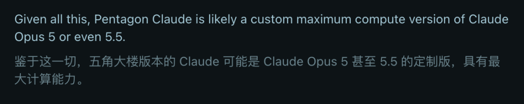军方几乎可以确定,正在运行一个领先公开版本好几代的定制模型——算力拉满,训练数据里全是机密和敏感信息。