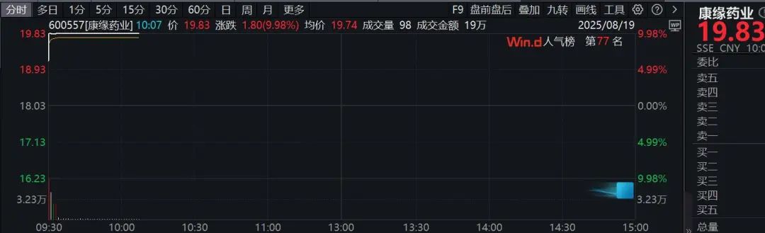 创新药概念集体拉升,康缘药业(600557)开盘后直线拉升涨停。