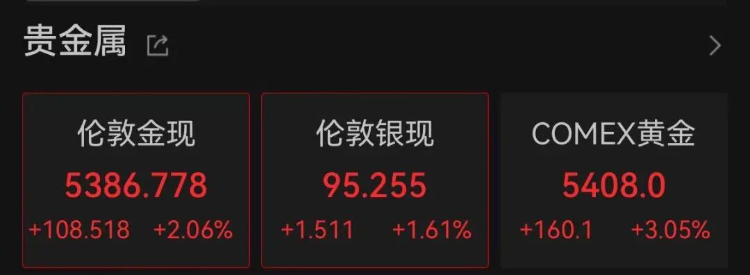 现货黄金、白银与原油价格也继续拉升。