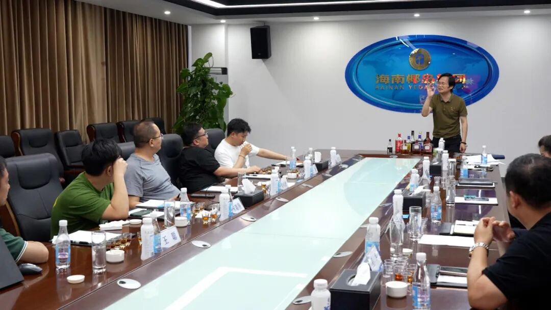 生产中心副总监展学孔从技术层面作研发专题介绍,阐释了椰岛产品背后的科研支撑与创新思路,特别是在传统工艺与现代技术融合上的探索与实践。随后,技术部总工程师刘小兵带领大家进行产品品鉴,让合作方更直观地感受椰岛产品的酒体风格与口感特点。