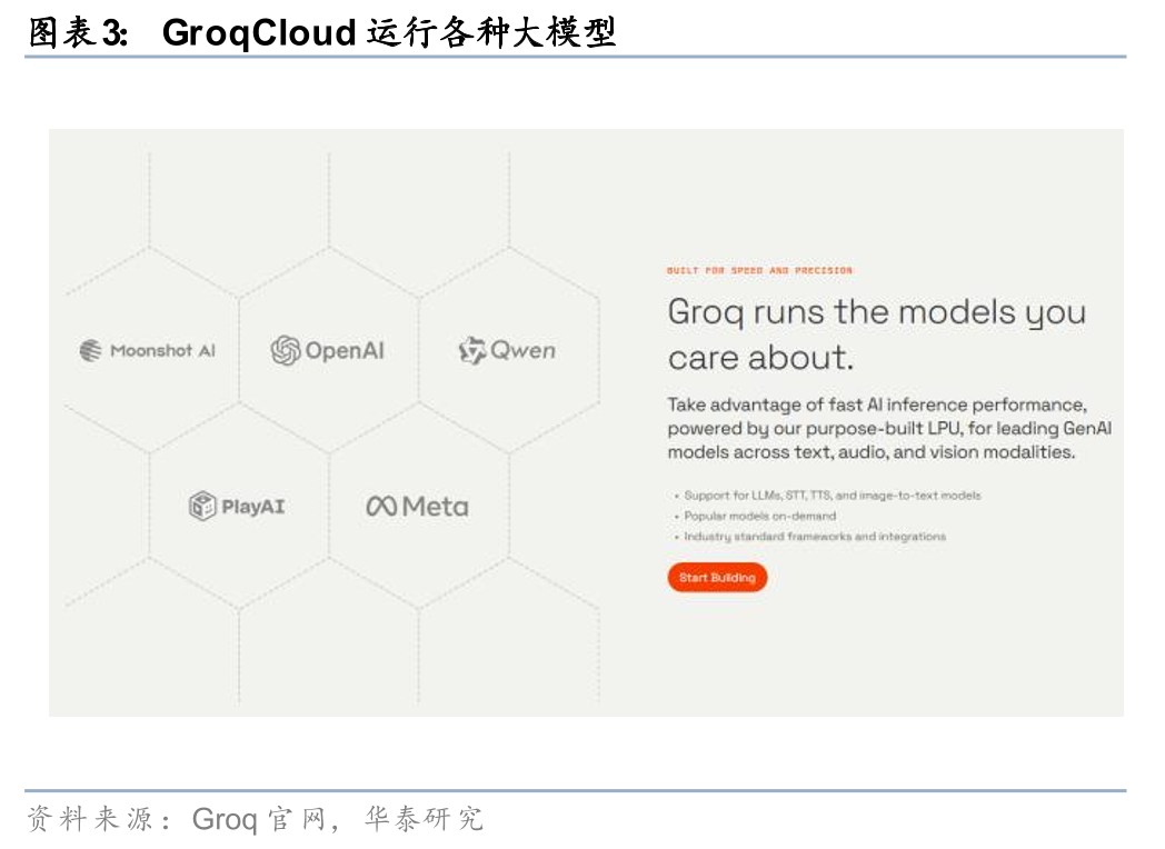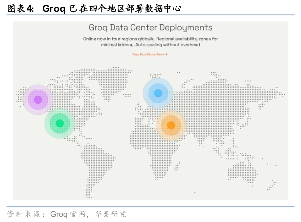 Groq为开发者提供GroqCloud的AI推理平台服务,开发者可在GroqCloud上使用海量主流模型(包括Compound、Kimi K2等),GroqCloud全部跑在全球4个区域的自建数据中心LPU集群上。目前通过GroqCloud服务全球超200万开发者,已部署十几个数据中心。