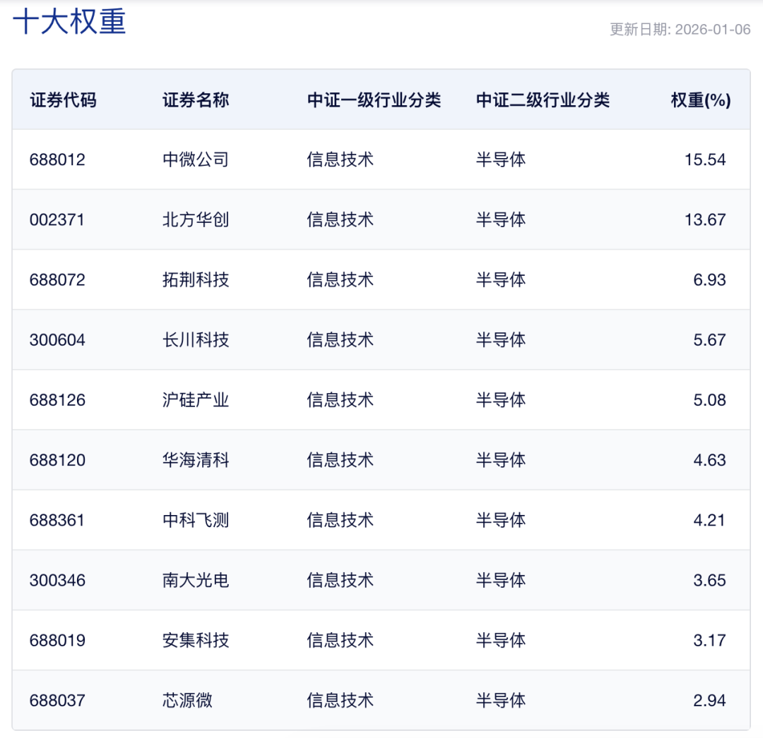 来源:中证指数公司,截至1月6日,前十大权重仅供分析参考,不构成个股推荐