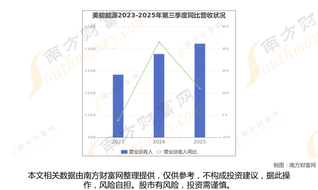 美能能源披露了2025年第三季度财报。报告显示(如上图),美能能源2025年第三季度实现营收1.27亿元,同比12.12%。