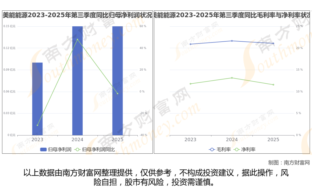 2025年第三季度季报显示,美能能源公司实现净利润1473.79万,同比增长-1.76%;毛利润为2680.27万,毛利率21.08%。