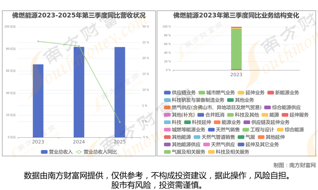 (如上图)佛燃能源披露2025年第三季度报告,报告期实现营收81.64亿元,同比-0.16%。