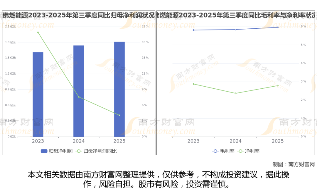 佛燃能源2025年第三季度季报显示,公司实现净利润1.81亿,同比增长4.07%;毛利润为4.86亿,毛利率5.96%。