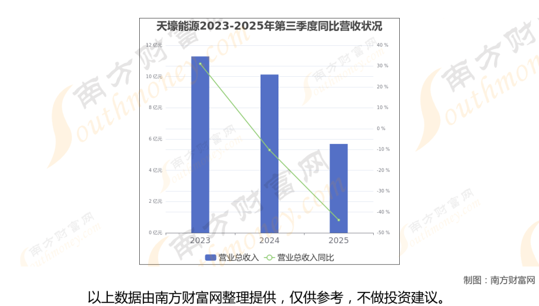 在2025年第三季度,天壕能源的业绩表现(如上图),主营业务收入达到5.69亿元,实现了-43.84%的同比增长率。