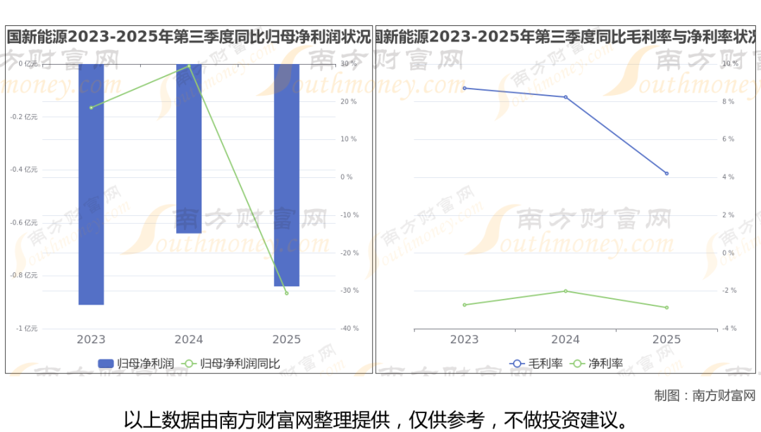 公司2025年第三季度季报显示,国新能源实现净利润-8405.07万,同比增长-30.64%;毛利润为1.36亿,毛利率4.21%。