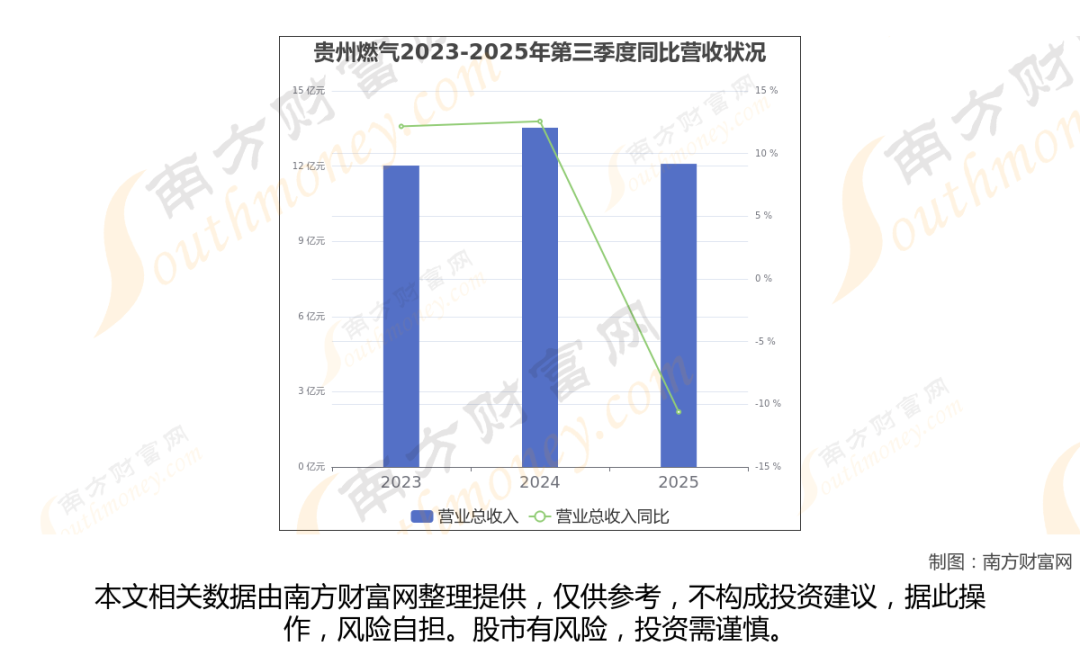 贵州燃气披露了2025年第三季度财报。报告显示(如上图),贵州燃气2025年第三季度实现营收12.09亿元,同比-10.61%。