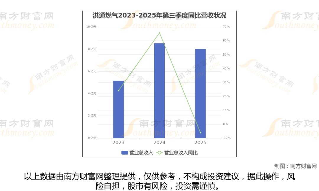 洪通燃气2025年第三季度报告显示(如上图),公司实现主营业务收入8.01亿元,较去年同期增长-6.16%。