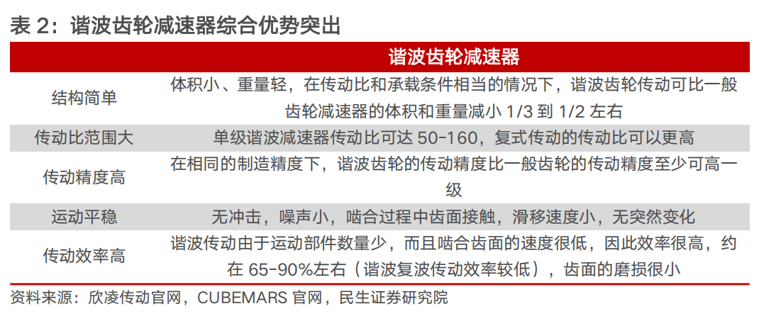 3.2.1 谐波减速器:高精度且具备体积优势