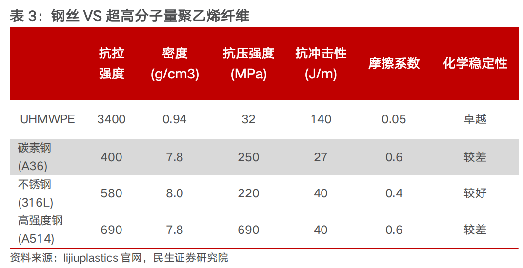 腱绳材料的选择对灵巧手的功能执行影响较大。在对灵巧手腱绳材料选择时,需综合考虑机械性能(抗拉强度、弹性模量等)、环境适应性(温度&湿度耐受性、化学稳定性等)、耐久性(耐磨性、抗疲劳性、抗蠕变等)及成本等多方面因素。早期,腱绳材料主要是特氟龙、芳纶纤维、涤纶等,随后逐渐出现了更高强度、低密度、耐磨损的新材料,当前腱绳驱动的主流选择主要是两种:高强度钢丝、超高分子量聚乙烯纤维(UHMWPE)。