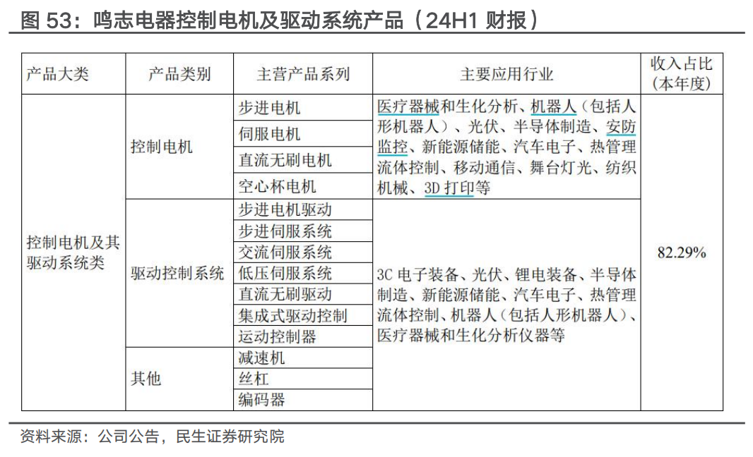 公司可提供运控系统级解决方案,定位人形机器人解决方案供应商。公司目前已具备完备的伺服系统、步进系统、控制技术类产品,以适用面广泛的通用型系列产品为主,并深耕细分行业工艺及终端大客户。公司已积极布局人形机器人领域,定位于伺服控制产品与解决方案提供商、为众多整机厂家提供系列化伺服控制核心部件和模组级解决方案。2023年成功研发出高密度无框力矩电机、CD伺服驱动器、中空编码器、空心杯电机及配套的微型伺服系统等核心产品,经过数十家客户测试、验证和试用,已获得数家机器人客户的大批量订单;公司与德国知名自动化公司联合开发的机器人关节模组的产品获得成功,并获得多家客户试用、验证。