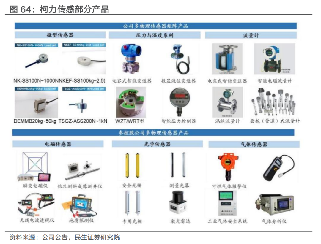 公司是力矩传感龙头,重点突破机器人传感器。公司主要提供应变式传感器、仪表等元器件,并围绕主业积极开展投并购,沿着机器人力学、触觉、视觉、惯导传感器的主投方向,布局气体、温湿度、MEMS、压力、扭矩等多种物理量传感器相关产品。公司着力重点突破机器人传感器,六维力/力矩传感器已完成人形机器人手腕、脚腕,工业臂、协作臂末端的产品系列开发,并已给多家国内协作机器人、人形机器人客户送样,并将继续向微型、高频响应、MEMS 硅基、力控算法集成等方向进行突破。触觉传感器已启动与多家企业、院校的合作,同时以自研模式进行研发。