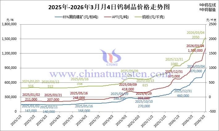 钨精矿市场上,矿砂资源供应仍处于紧俏状态,持货商普遍保持惜售态度,叠加近期国际地缘冲突升级,钨作为战略性金属的估值持续升温,推动行情保持坚挺态势。