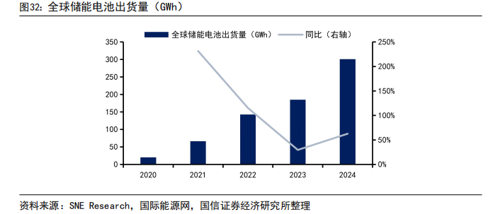 储能电芯出货高增,2026年或将迈向800GWh新台阶。2020-2024年全球储能电池出货量呈现爆发式增长态势,出货量从2020年的20 GWh提升至2024年的301 GWh,4年间规模扩张超15倍,年复合增速超100%。2024年全球动力电池及储能电池总出货量达1299 GWh,同比增长24%,其中储能电池贡献了核心增量,从2023年185 GWh升至2024年301 GWh,同比增62.7%。根据InfoLink全球储能供应链数据库数据显示,2025年前三季度全球储能电芯出货量已达410.45 GWh,同比大幅增长98.5%。其中第三季度表现尤为强劲,受益于海内外市场需求同步释放,电芯企业普遍实现满产满销,单季出货量达170.24 GWh,创下历史新高。需求端的快速放量已推动市场由此前的产能过剩转向阶段性紧平衡,部分厂商开始释放涨价信号。基于当前排产与订单情况,InfoLink预计2025年全年全球储能电芯出货量将超过560 GWh,并有望逼近600 GWh。展望2026年,全球储能需求仍将持续多点发力,而新增产能主要集中在下半年释放,整体供需或呈现上半年偏紧、下半年逐步宽松的格局。综合各厂商出货指引及区域项目落地进度,InfoLink初步预测2026年全球储能电芯出货量将接近800 GWh,行业仍将保持中高速成长态势。