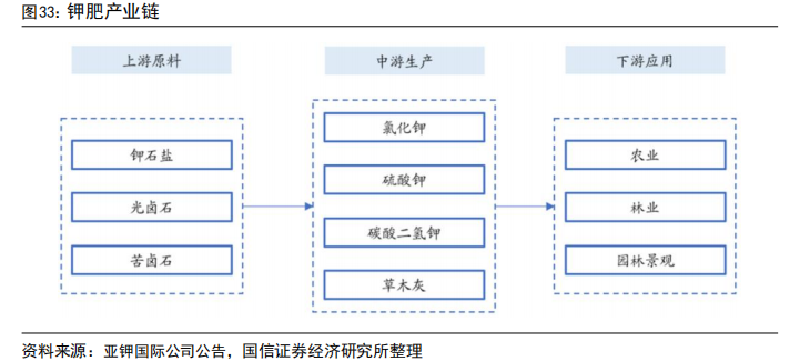 钾是农作物生长三大必需的营养元素之一,具有增强农作物的抗旱、抗寒、抗病、抗盐、抗倒伏的能力,对作物稳产、高产有明显作用,因此几乎每种作物都需要适量施用钾肥。钾肥主要品种包括氯化钾、硫酸钾、硝酸钾以及硫酸钾镁,其中氯化钾由于其养份浓度高,资源丰富,价格相对低廉,在农业生产中起主导作用,占所施钾肥数量的95%以上。