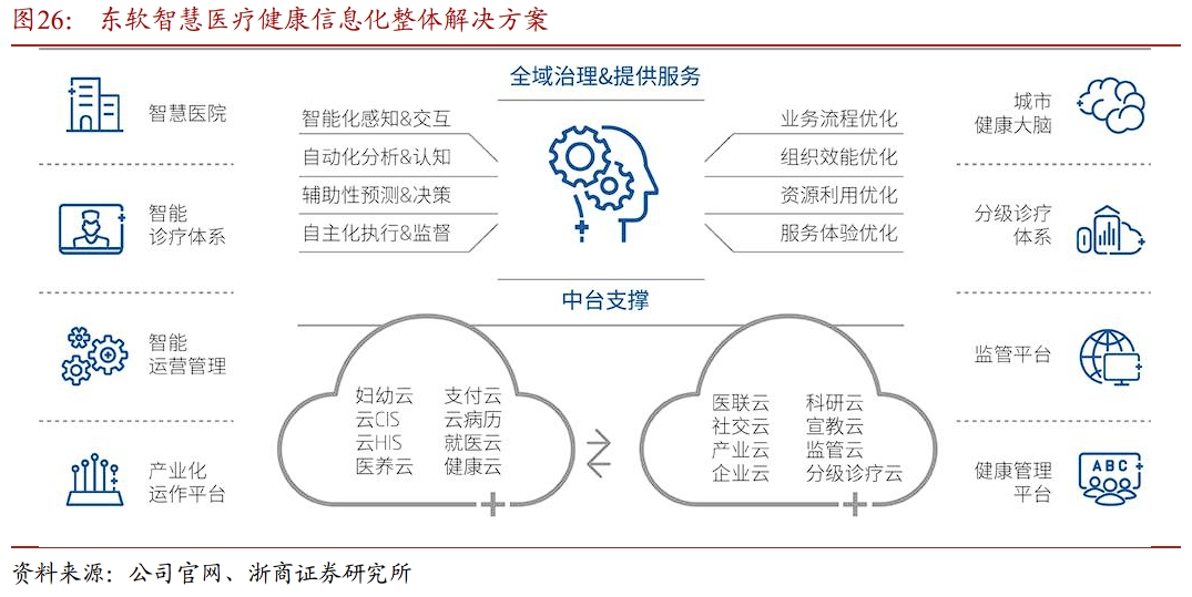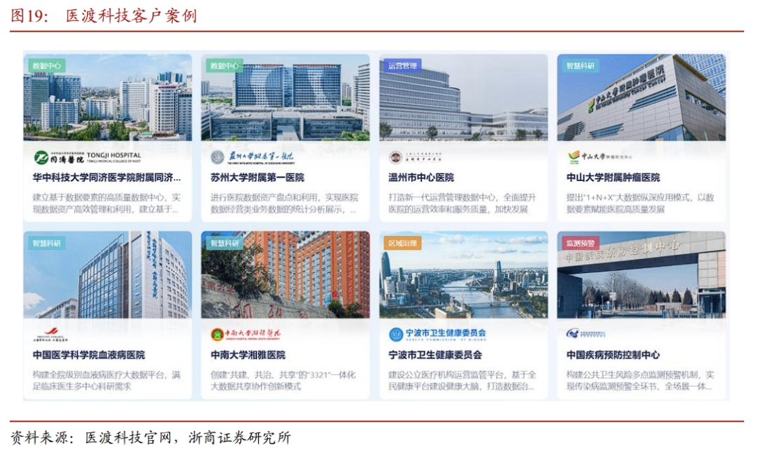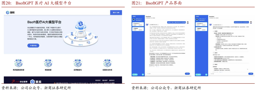 ➢AI医保零星报销智能受理:实现全环节5至10分钟受理完成,提升效率高达83%,节约人力超60%,可实现整体识别准确率90%以上,平均识别速率为5-6s/页。3.7 卫宁健康: 实践“Copilot for Everything”行动计划卫宁健康提出“AI Everywhere 全场景赋能”的发展方向,产品设计将围绕AI智能化创新,实践“Copilot for Everything”行动计划,为用户提供AI增强医疗产品的同时,也在内部的代码开发、文档设计、运维知识服务查询等环节引入AI。从研发生产体系,到赋能智能医疗全场景,全速驱动生产力转型与突破。2025年2月10日,卫宁健康正式发布了其人工智能医护助手WiNEXCopilot的最新版本2.1,以及医疗大语言模型WiNGPT的2.8版本。在2024年发布的WiNEX Copilot 2.0基础上,最新迭代版WiNEX Copilot 2.1进一步聚焦场景深化、模型支持、平台能力三大方向,覆盖临床、护理、医技等关键医疗场景,贯穿诊前、诊中、诊后全流程,全面深化医疗临床与管理场景质控能力与移动端场景拓展。AI从PC延伸到移动端。卫宁健康移动产品WiNEX MY搭载WiNEX Copilot 2.1,使AI能力不再局限于PC端,在移动场景中,医护有了“口袋里的AI”,例如语音查房、知识查询、流程管理等场景将变得更加智能和便利。本次移动端主要发布场景包含“移动知识助手”及“智能交接班”。3.8 嘉和美康:医疗信息集成平台已正式接入DeepSeek嘉和美康推出了医疗临床“AI助手”,面向全院数智化转型需求,提供中枢化(医技)决策支持引擎以及医疗AI应用开放平台。该平台作为全院智慧化服务的接入底座,为诊断支持、辅助诊疗、病情预警、疾病风险预测、临床科研、病历内涵质控、公共卫生监测等跨场景应用提供分级分类预警管理,支持即插即用,实现多技术框架、多厂商、多业务AI应用接入,为传统信息系统配备“智慧大脑”,满足电子病历高级别评审要求。公司于2025年推出了新一代智能电子病历平台(V7),该平台的核心亮点在于嘉和医疗大模型的深度接入,贯穿患者诊疗的每一个环节,从病历自动生成、疾病诊断预测,到个性化治疗方案推荐,再到智能随访管理,为医生提供全方位的智能化支持。同时,嘉和美康基于长期积累的病历质控知识库开发的病历内涵质控功能,此次完整融入电子病历V7平台,实现病历质控全环节智能化覆盖。此外,嘉和美康的医疗信息集成平台已正式接入DeepSeek,加速AI大模型在医疗领域的创新应用。平台全面升级后,医生登录智慧门户后,可向智能助手提问,查询排班情况、需要注意的患者等信息。患者信息呈现也更加智能,借助DeepSeek强大的数据分析和处理能力,智能助手可快速筛选出关键患者,为医生提供更加高效、精准的智能化工具。3.9 东软集团:东软医疗健康智能化全系解决方案适配DeepSeek公司成立于1991年,在智慧城市、医疗健康、智能汽车互联和企业数字化转型等多领域处于领先地位。不断探索应用云计算、大数据、物联网、人工智能、区块链等新技术。在医疗信息化领域,东软构建RealOne Suite、CloudOne Suite 和 HealthOne Suite 三个整体解决方案。截至 2024 年 6 月末,东软智慧医疗业务在全国 31 个省级行政区实现业务落地,已服务超过 600 家三级医院客户、 2,800 余家医疗机构客户、80,000 余家基层医疗卫生机构,承担了30多个省市的全民健康信息化建设,实现以软件赋能医疗全场景的发展阶段。东软的智能预问诊、病历生成与质控等核心医疗AI应用将陆续完成DeepSeek接入,通过知识蒸馏技术,实现精准且成本有效的医疗领域大模型。3.10 晶泰控股-p:量子物理 AI,赋能药物研发晶泰控股是一家以量子物理和人工智能赋能药物研发的创新科技公司,公司的创始人包括温书豪、马健、赖力鹏三位博士,均为麻省理工学院(MIT)的量子物理与AI科学家,具备深厚的学术与产业背景。公司的核心产品和服务涵盖了药物研发与自动化化学合成等多个领域,包括小分子药物发现平台ID4、抗体发现平台XupremAb™、自动化化学合成、智能化固态化学筛选平台以及多项化学和物理服务等。➢小分子药物发现平台ID4:晶泰控股的集成、端到端技术平台,能够高效地提供经过验证的小分子临床前候选药物。