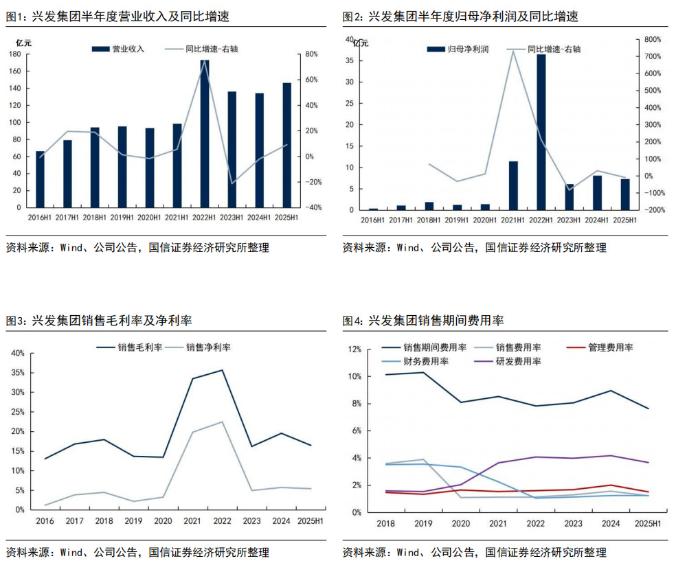 草甘膦盈利水平有望迎来修复,二甲基亚砜延续高盈利水平。据百川盈孚,截至2025年3月31日,华东地区95%草甘膦原粉市场价为2.71万元/吨,较3月上旬上涨4000元/吨,涨幅17.32%。随着农药行业反内卷工作的推进以及海外拜耳面临的诉讼问题短期内难以解决等催化,我们看好下半年草甘膦价格继续在高位维持,草甘膦产品的长期盈利水平也有望实现改善。2025年上半年,兴发集团拥有5万吨/年二甲基亚砜产能的子公司新疆兴发化工实现营业收入3.23亿元,净利润1.06亿元,净利润率32.76%,公司亚砜产品的盈利能力保持了良好水平。