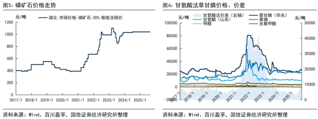 草甘膦行业反内卷工作推进,盈利水平有望修复。据百川盈孚,截至2025年3月31日,华东地区95%草甘膦原粉市场价为2.71万元/吨,较3月上旬上涨4000元/吨,涨幅17.32%。2025年以来中国的草甘膦开工率维持高位,工厂库存大幅下降,出口量持续增长,海外种植面积增加,整体看草甘膦行业需求持续向好,前期库存低位使得6-8月份南美补库旺季时草甘膦价格持续上涨。长期看,随着农药行业反内卷工作的推进以及海外拜耳面临的诉讼问题短期内难以解决等催化,我们看好下半年草甘膦价格继续在高位维持,草甘膦产品的长期盈利水平也有望实现改善。