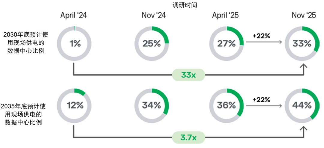 图表10:开发商对数据中心现场发电部署的预期正持续提升,这反映出行业对快速、可靠电力供应的迫切需求