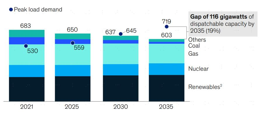 图表4:2035年欧洲可能面临116GW可调度电源缺口(若无新增机组)