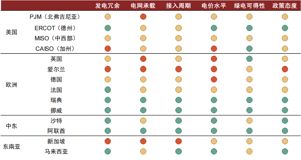 图表8:海外各区域电力对发展数据中心的情况分析