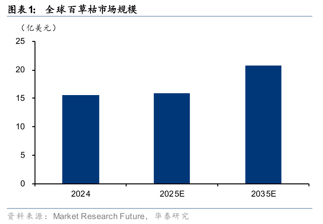 百草枯是一种触杀型除草剂,具有广谱、触杀作用快、耐雨水冲刷、非选择性等优异特性。凭借性价比及杂草对其产生的抗性较小等优势,百草枯在印度等多个发展中国家市场维持刚性需求。据Datamyne,17-24年美国百草枯进口总额每年4000万至1.56亿英镑之间,用于对草甘膦产生抗性的杂草、清除田间杂草、作物收割前的干燥处理等需求,且百草枯被美国关税豁免。25年下半年来海外需求旺盛,据百川盈孚,我国百草枯开工率由25年6月51%增至26年2月89%。伴随非洲等地粮食生产扩张以及美国等地区替代草甘膦需求,百草枯未来需求有所支撑,景气有望持续改善。据Market Research Future,25-35年百草枯全球市场规模CAGR有望达2.7%。