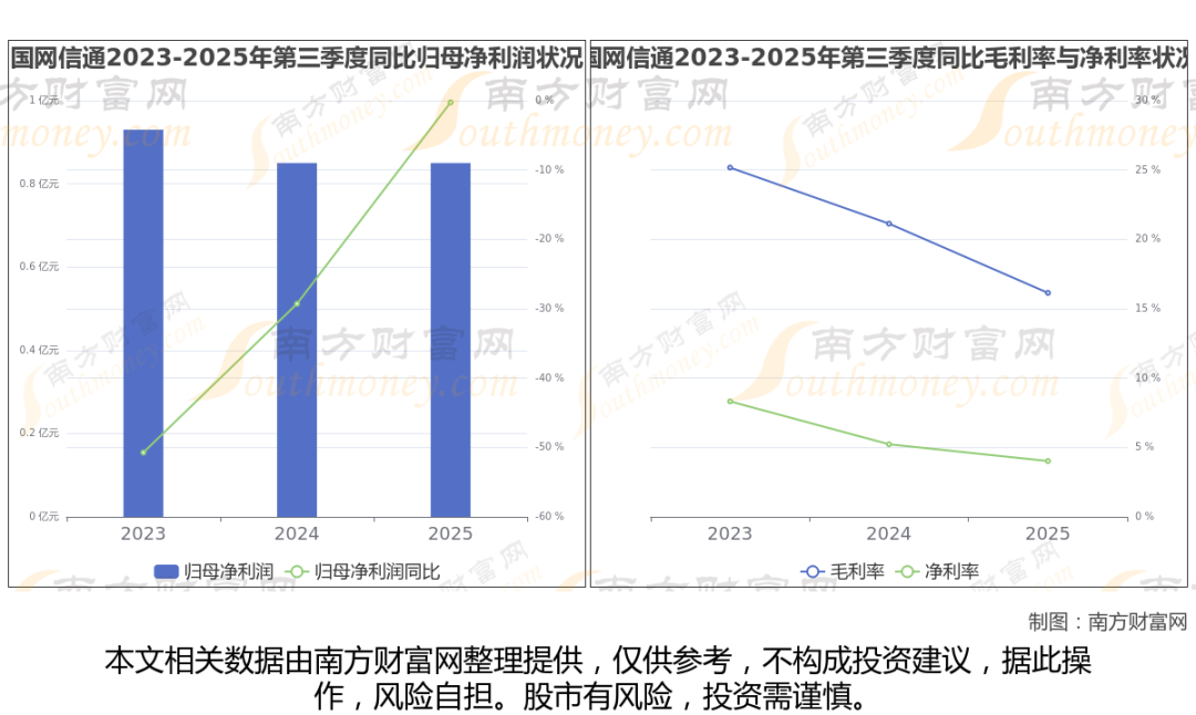 2025年第三季度季报显示,国网信通公司毛利率16.14%,净利率4.02%,归属净利润8525.2万,同比增长-0.26%。