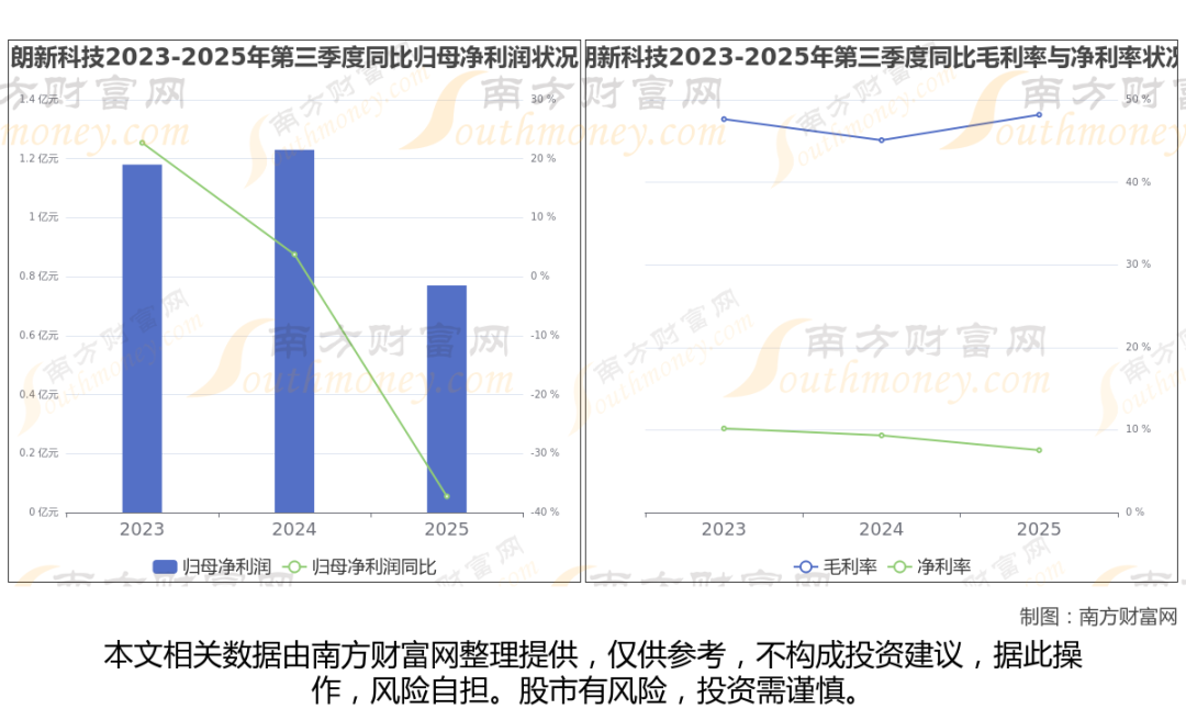 于2025年第三季度,朗新科技披露了其业绩表现(如上图),其中主营业务收入9.04亿元,相较于去年同期-21.48%。